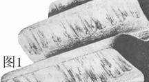 圖30所示為中等硬度齒輪由于碾壓和敲擊作用而造成的表面變形。這個(gè)齒輪很可能是受到超載荷,并且在有了初步的損傷之后長(zhǎng)期使用,造成表面敲壞。